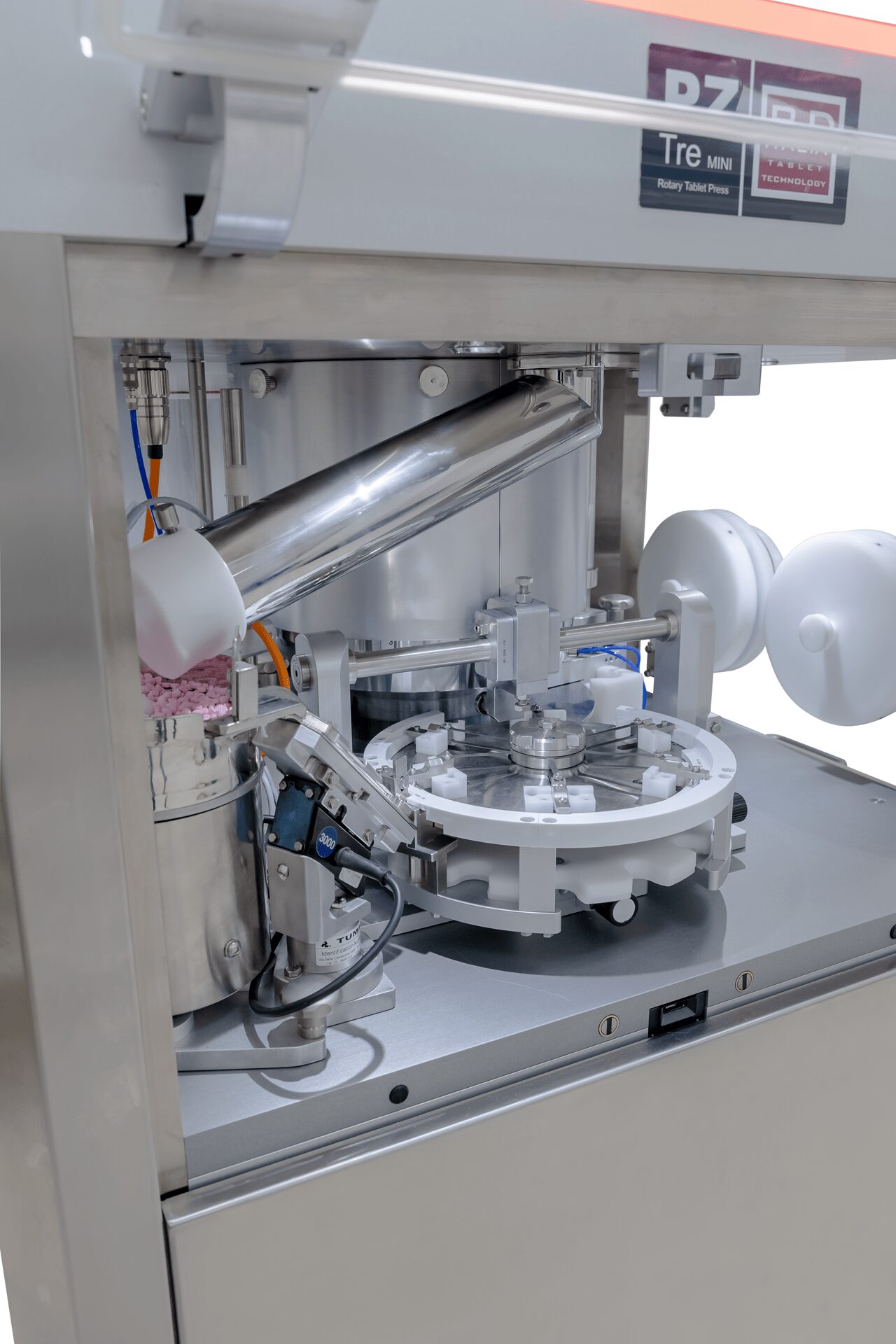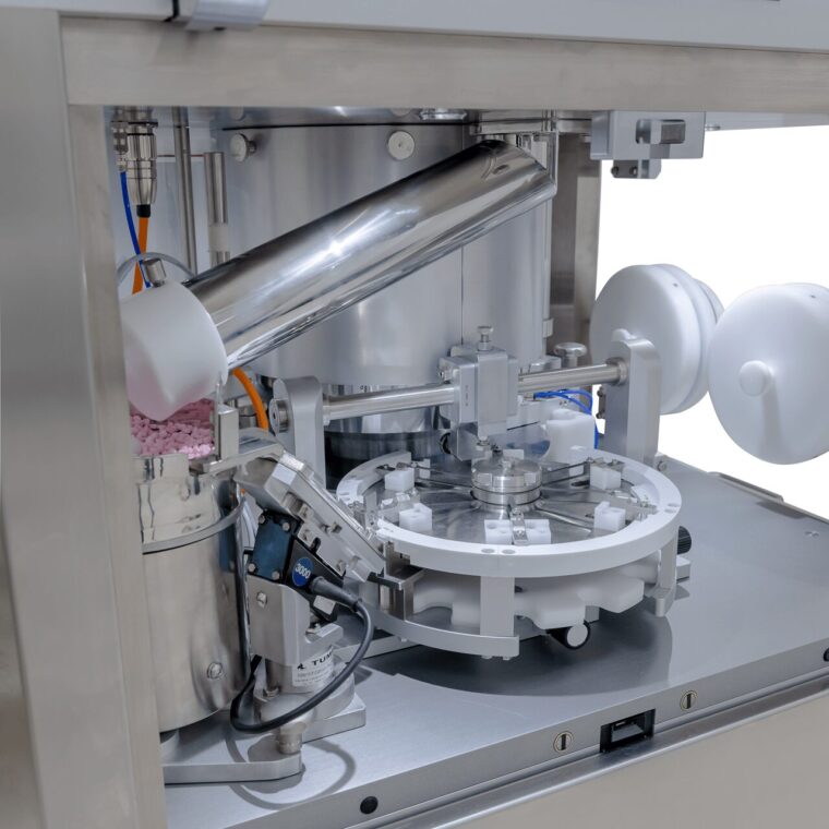 Un caricatore esterno per i nuclei e un sistema di caricamento dedicato permettono di produrre compresse ‘tablet-in-tablet’ con il nucleo avvolto o esposto. Le configurazioni si impostano facilmente tramite una funzione specifica del software di controllo modulare.